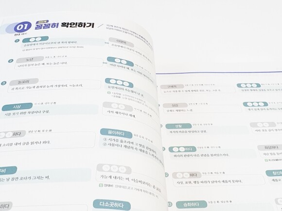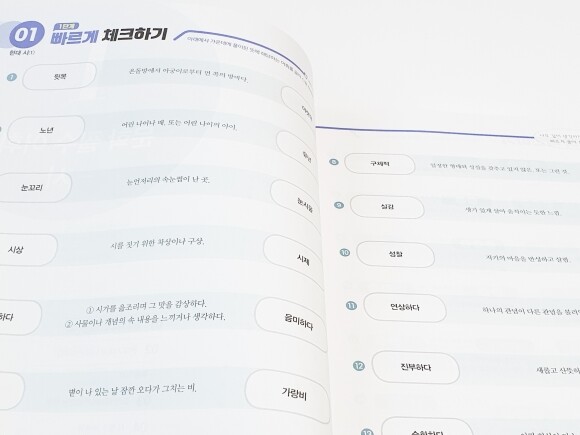 또, 현대 시, 현대 소설, 비문학, 문법과 관용표현 까지 구분하여 학습 할 수 있기 때문에 어휘에 대한 기초를 탄탄하게 할 수 있는 좋은 교재가 아닌가 싶다.