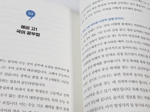 책을 통해 배경지식을 쌓고, 독해력 나아가 문해력을 높이는 방법들은 물론 실질적으로 가장 관심이 많은 것 중 하나인 어떻게 내신 점수를 올릴 수 있는가에 대한 방법들도 자세하게 설명해준다. 고등학생 친구들에게 이 책이 도움이 되지 않는다고는 할 수 없지만 초등학생 때부터 이 책을 통해 천천히 1등급을 준비해나간다면 정말 극대화 된 효과를 만날 수 있지 않을까 생각이 들었다.