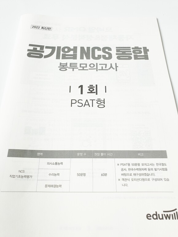 NCS봉투모의고사를 받아보는 순간 봉투가 아니라 고급스러운 박스에 담겨 있어서 역시 하나 하나 신경쓰는 에듀윌 이라고 생각이 들었다. 봉투보다 보관이나 이동 차원에서 훨씬 좋은 선택인것 같다.