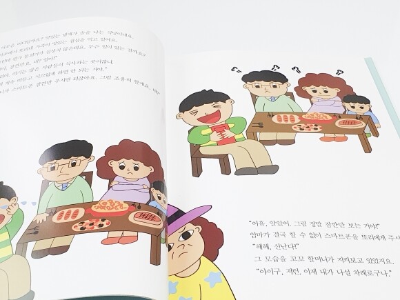 스마트폰 10분만요는 시대를 반영한 동화책이다. 사실, 어디를 가더라도 스마트폰 때문에 큰 소리가 나는 경우를 쉽게 만날 수 있다. 그만큼 아이들이 스마트폰에 대한 의존도가 높다는 것을 알 수 있다. 이 책을 통해서 아이들이 스마트폰을 잠시 내려놓고 세상의 다양한 재미와 경험을 느끼고 풍성하게 성장할 수 있게 되면 좋겠다.