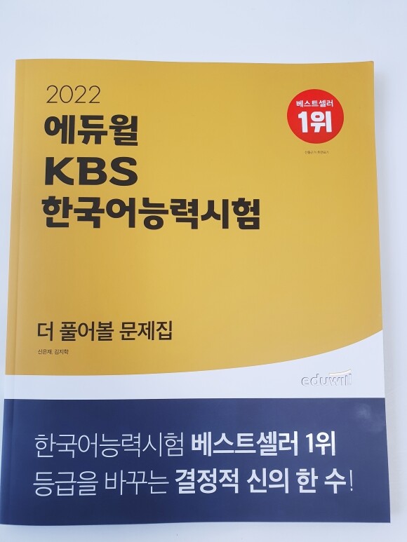 한국실용글쓰기 준2급 취득 한게 벌써 10년 정도 지난 것 같다. 여러모로 새로운 도전도 할겸 자격증 취득에 도전해볼 생각이다. 그러다 문뜩 떠오른게 KBS한국어능력시험이다. KBS한국어능력시험 후기를 보니 실용글쓰기와는 달라서 다시 공부를 해야겠다는 생각이 들었다. KBS한국어능력시험 독학 노하우를 검색하다보니 에듀윌KBS한국어능력시험 더 풀어볼 문제집이 보였다. 개인적으로는 한국어 시험 자체에는 조금 자신이 있는 편이라 문제를 풀어보면서 현재의 수준 파악 겸 어느 정도 성적이 나온다면 바로 시험에 도전해 볼 심산이다.