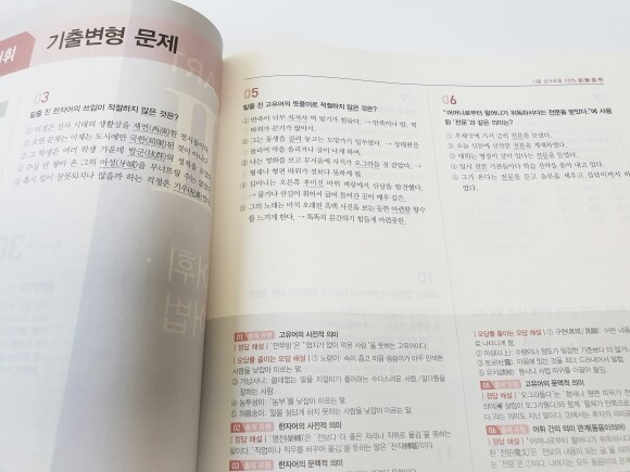 취약유형 체크표, 각 출제 유형에 대한 설명 특히 오답을 줄이는 오답 해설 같은 내용을 꼼꼼하게 확인한다면 등급을 올리는데 큰 도움을 받을 수 있을 것 같다. 오가지 않게 같은 페이지에 배치된 점도 시간도 줄이고 오답을 정리하고 다시 복기 하는데 큰 도움이 되었다. 왔다갔다 하면서 공부하는게 시간이 생각보다 오래 걸리기 때문에 그런 비효율적인 동작을 줄일 수 있어서 정말 좋았다.