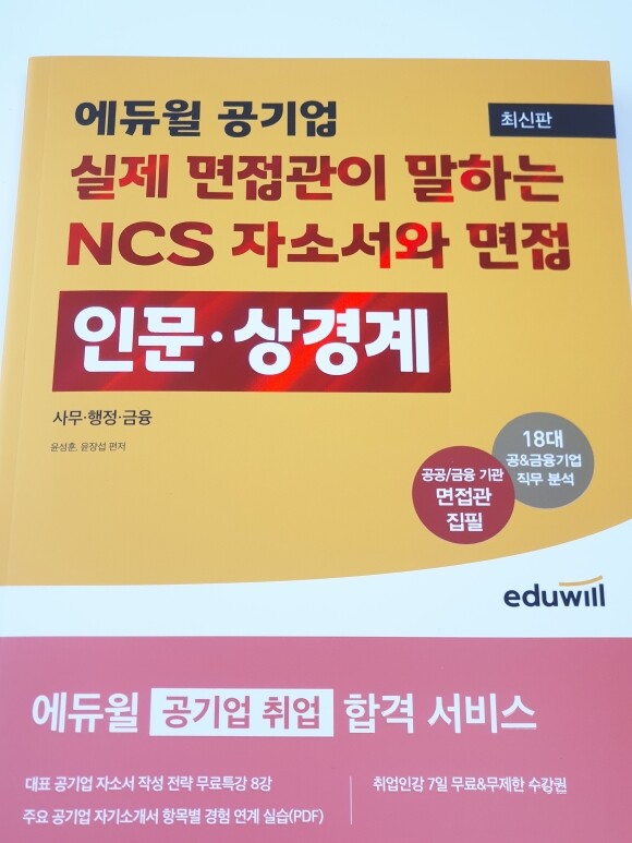 언제나 취업 준비 하다보면 자소서와 면접의 벽에 마주하게 된다. 공기업의 경우의 압박은 말할 것도 없다. 그런데 그런 고민을 해결해줄 NCS자소서, NCS면접 책이 있다면? 바로 에듀윌 NCS자소서와 면접책이다. 공기업면접에 필요한 전략을 잘 정리해줘서 큰 도움을 받을 수 있을 것 같다. 늘, 에듀윌의 책을 보다보면 정말 섬세하게 수험생을 위해 꼼꼼하게 준비했다는 생각을 한다. 핫 키워드를 통해서 맞춤 전략을 짜는데 큰 도움을 받을 수 있다. 공기업자기소개서와 공기업면접은 아무래도 그냥 정보를 검색해서 준비하는데는 한계가 있다고 생각한다. 이유는 검색한다고 일일이 맞춤 정보를 얻기 힘든데 그런면에서 에듀윌의 교재가 정말 정리 잘 되어 있다는 느낌을 받았다.