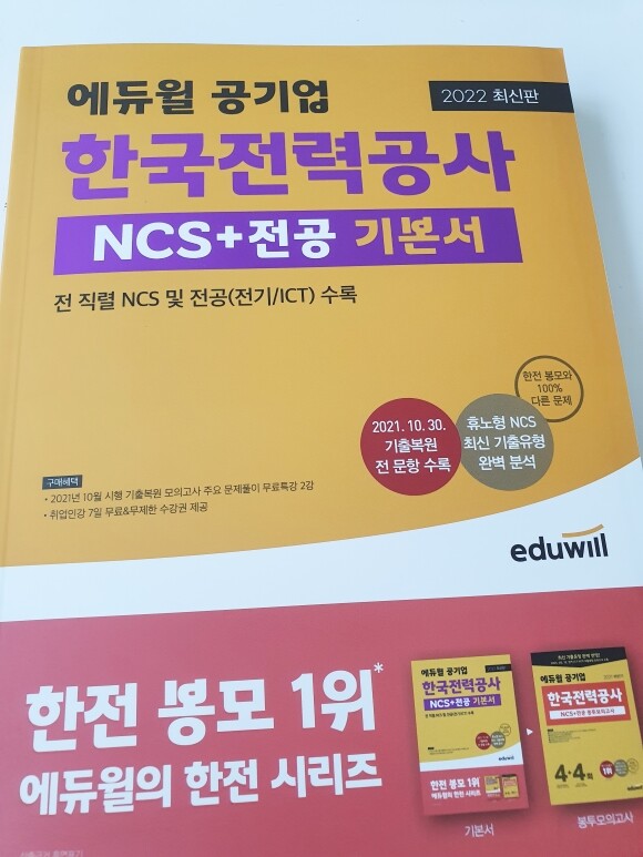 최근에는 독학하는데 워낙 좋은 책이 많이 있지만 이 책은 오직 한국전력공사 만을 목표로 만들어진 책이기 때문에 집중도도 높고 앞으로 꾸준히 하면 좋은 결과에 큰 도움이 될 것 같다. 파이팅!!