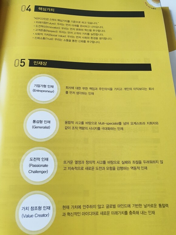 역시! 에듀윌은 다르다. 한전준비를 하기 위해서는 대략적인 일정을 알아야 한다. 2019년 부터 진행되었던 일정들을 꼼꼼하게 포함시켰다. 이 것을 보면서 감을 잡으면서 페이스 조절을 하면 좋을 것 같다. 한전시험을 보기 위해서는 아무래도 한전에 대해 자세히 알아봐야 한다. 그러한 번거로운 과정을 없앨 수 있도록 채용절차, 인재상 등 알아둬야 할 정보들도 수록되어 있다. 한전준비를 하는데 정말 큰 도움이 될 것 같다.