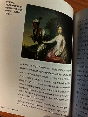 이 곳은 1700년대 후반 윌리엄 머레이라는 영국 대법관의 집이였고, 당시 조카 손녀인 디도가 살았다. 디도는 당시 존 린지의 딸이며, 흑인이다. 노예무역이 한창이던 시절 흑인 손녀라.. 사실 그 존재를 인정하지 않았어도 하등 이상할 것 없는 시기에 그녀를 “자유로운 여성”이라 명시했으며, 물론 금액의 차이는 있었으나 다른 가족과 동일하게 유산을 배분했다고 하니, 그림에서 보여지는 그녀의 당당한 모습이 그 사실을 뒷받침 하고 있음을 증명하고 있었다.
