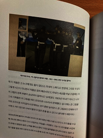 이 잘린 그림보다 더 놀라운 사실은 그림의 스토리이다. <막시밀리안 황제의 처형> 사실 막시밀리한 황제를 처형한 것은 멕시코였다. 하지만 프랑스에서 버려졌기에 처형된 황제이기에 그림 속 병사는 프랑스 군복을 입은 것 ‘같아’ 보인다고 한다. 그래 보인다는 것과 그림의 잔인성으로 당시 프랑스에서는 유통조차 금지되었다고 하니, 정물화나 인물화 위주로만 알고 있던 내게 비판적 시선의 마네는 꽤나 신기했다.
