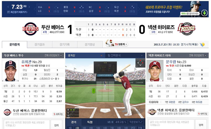 포스팅을 쓰고 있던 이 날도 저는 야구를 신나게 보고 있었습니다.