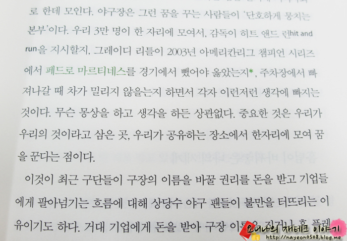 이 책을 통해서 메이저리그 선수도 많이 눈에 익혔고 제대로 된 용어 정리도 할 수 있게 되었습니다.