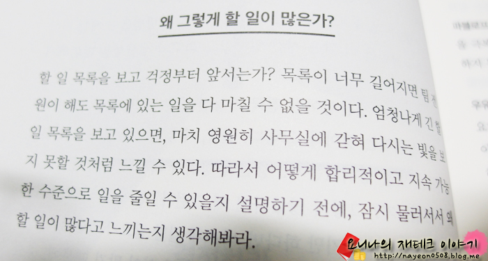해야할 일은 반드시 하는데 그 효율성이 갈수록 떨어지는 것 같아서 신청을 했는데 서평단에 당첨되었습니다.