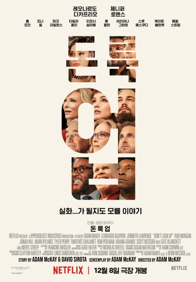 ✒ 6개월후 혜성이 지구와 충돌하여 인류가 멸종할 것이라고 외치는 과학자가, 저질 정치인과 그에 부역하는 지식인 그리고 이런 현상에 기름을 붓는 선정주의 언론과 (구글이나 네이버같은) AI 알고리즘 독점 기업으로 구성된 카르텔의 무차별 ‘폭력‘에 맞서 진실을 알리려 동분서주한다. 지구로 돌격중인 혜성만 빼고 여기 나오는 일들이 모두 사실이라는 점, 그리고 이 위험한 부패 돈벌이 메커니즘이 지구와 인류의 종말을 혜성보다 더 앞당길 것이라는 사실이 오싹하다. 정파적 이해관계와 돈때문에 진실을 은폐하고자 ˝하늘을 쳐다보지마˝라는 기득권 카르텔의 행태를 보면 ˝손바닥으로 하늘을 가릴 수 없다˝라는 옛 속담이 떠오른다. 민심은 천심이다. (코로나19를 정치적으로 이용하던 트럼프는 3차 부스터샷까지 몰래 맞은 상황에서 지지 정당이 다르다는 이유로 아직 백신 미접종중인 분들이 안타깝다. 영화에서, FBI가 국가기밀누설죄로 과학자들을 체포하는 장면은, MB시절 한국 검찰이 온라인에  경제 상황과 예측에 대한 글을 올린 미네르바라는 닉네임을 사용하는 사람을 기소한 일을 떠올리게한다. 영화가 아니라 몇년전 실제로 일어났던 일이고 지금도 진행중인 극우정당-언론-포털-검찰 협력 메커니즘이다.)