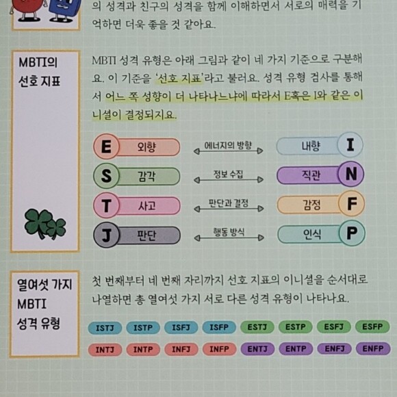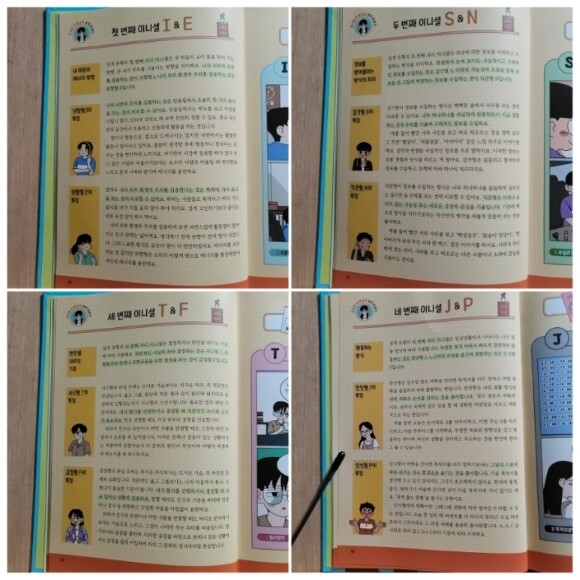 첫번째부터 네번째 자리의 이니셜을 유형별로 잘 설명해주고 있어서 자신의 MBTI를 모르고 있어도 대략적으로 '아~ 이거겠구나..' 라고 알 수 있어요.