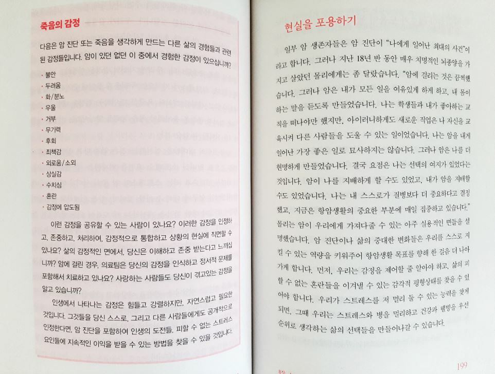 한국인의 사망원인 1위인 암은 1983년 통계 작성 이래 37년째 1위를 차지하고 있다고 한다. 기대 수명인 83세까지 살게 될 경우, 암에 걸릴 확률이 37.4%나 된다고 하니 누구도 무시할 수 없는 질병이다. 예전에 암은 걸리면 무조건 죽는다는 생각이 들 정도로 무서운 병이었다. 하지만, 지난 10여 년 동안 국내 암 사망률은 대폭 감소했다고 한다. 의학 기술의 발달로 조기 검진과 적절한 치료와 관리가 잘 이루진 결과가 아닌가 생각해본다. 암에 대한 가족력이 있고, 또 암 투병 중인 친지도 있어 암에 대한 많은 궁금증을 가지고 있었는데, 이번 기회에 『암을 극복하는 항암 생활』을 읽어보게 되어 많이 기대되었다.