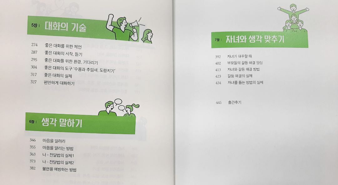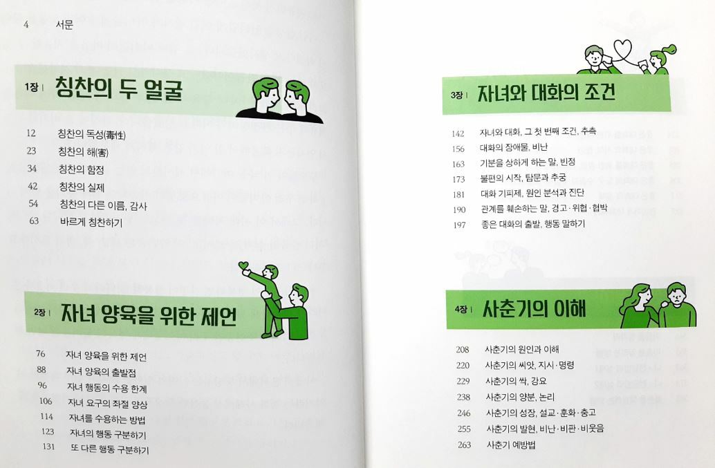 이 책은 전체 7개의 장으로 이루어져 있다. 칭찬의 두 얼굴로 시작해 자녀 양육을 위한 제언, 자녀와 대화의 조건, 사춘기의 이해, 대화의 기술, 생각 말하기 그리고 자녀와 생각 맞추기로 끝맺는다. 저자는 무엇보다도 청소년 문제의 주된 핵심이 소통법에 있으며, 올바른 소통과 대화가 관계의 회복과 청소년 문제를 막는 지름길이라 생각하고 치유와 공감의 대화를 통해 문제가 회복될 수 있도록 친절하게 그 방법을 설명하고 있다.