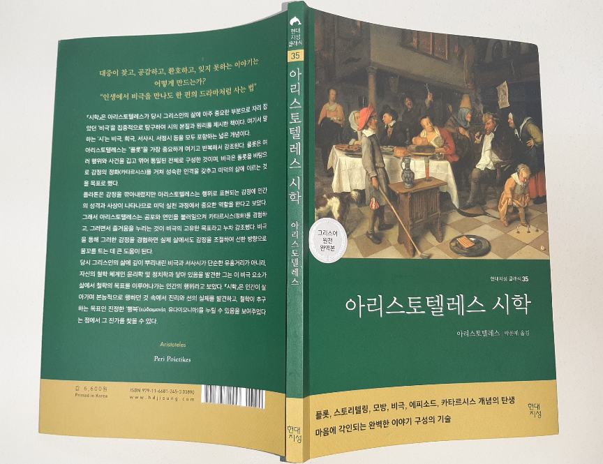 처음 책을 받아보고 비교적 적은 분량에 대충 책장을 넘겨보니 아니나 다를까 쉽게 넘겨 읽을 책이 아니다. 본문만큼이나 빼곡한 주석이 이 책의 진가를 보여주는 듯하다. 청록색의 표지에는 네덜란드 화가 얀 스테인 그린 술집 풍경이 있다. 다양한 사람들의 온갖 종류, 인생이야기가 집합해 있는 술집의 풍경이 『시학』의 표지에 잘 어울려 보였다.