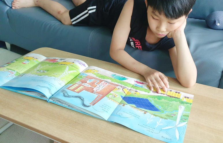 아이는 태권도에 가기 전이나 학교에 가지고 가서 매일 조금씩 읽더라고요.