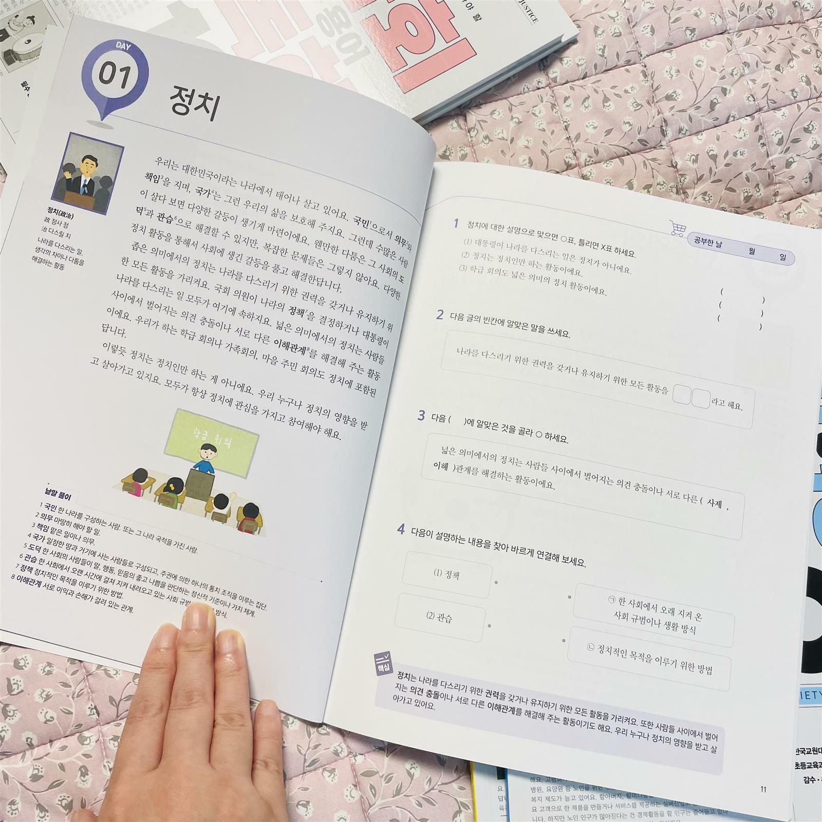 상식 차원에서도 알아두면 좋은 사회용어를 관련 지문을 통해 내용을 이해하고 그에 관한 문제도 풀어 보면서 재미있게 익힐 수 있어서 좋네요 막상 그 용어에 대해서 물어보면 뜻을 설명하거나 어떤 경우에 쓰이는지 알려 주기 어려울 때가 종종 있는데 아이와 같이 공부 해 주면 좋을 거 같아요 교과서에 나오는 용어가 그대로 나와서 교과 공부하기에도 도움이 될 것 같구요