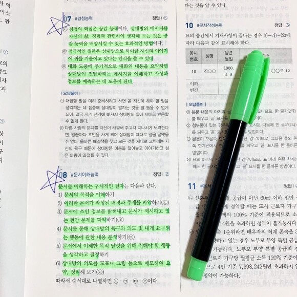 오답 문항을 다시 풀어본 후, 해설지로 한번 더 공부했는데, 해설지가 진짜 꼼꼼해서 형광펜과 볼펜으로 강조도 했다.