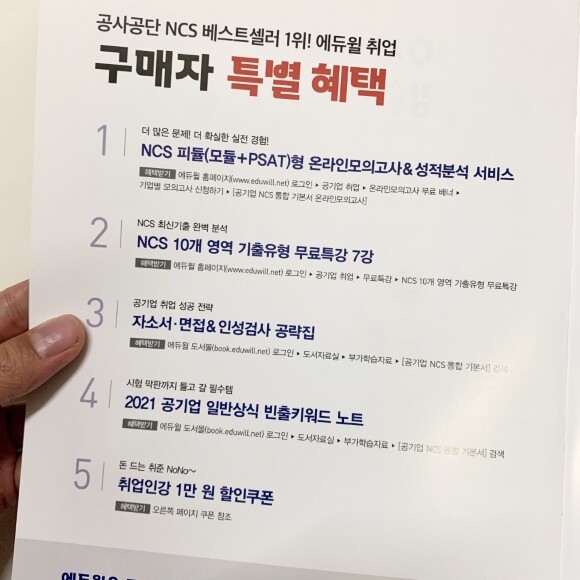 공기업 필기시험을 준비하는 취준생 분들에게 '에듀윌 공기업 NCS 통합 기본서' 추천해요:)