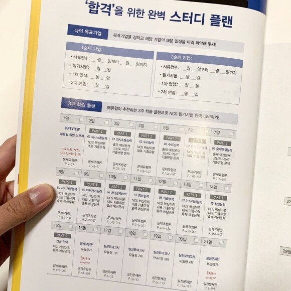 책에 합격을 위한 스터디 플랜표도 있었는데,