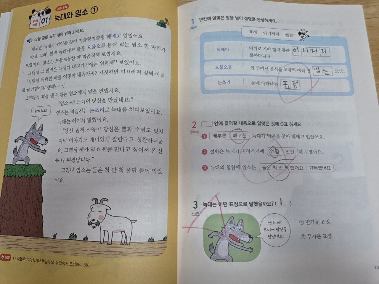 이야기가 많이 길지않고 재미있어서 아이가 흥미있게 꼼꼼히 소리내어 읽었어요. 이야기를 읽고 나서는 내용을 확인하며 자신의 생각을 표현하고 주인공의 마음을 짐작해보는 연습도 했습니다.