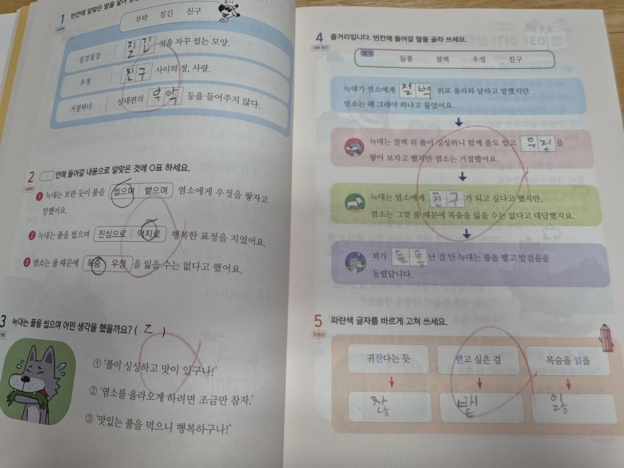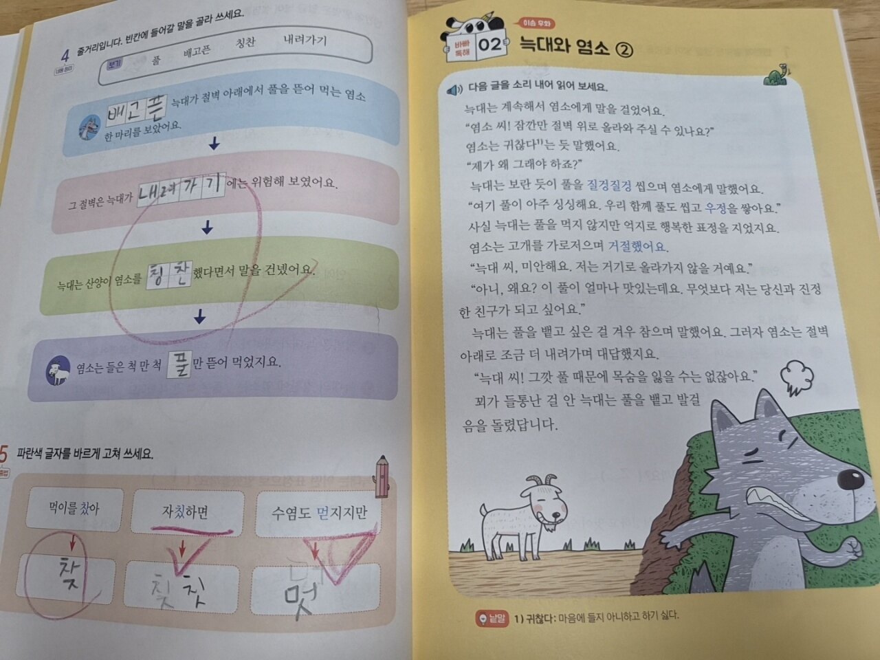 이솝우화는 2개의 글을 합쳐 하나의 이야기가 되다보니 한번에 2개씩 풀었어요ㅎㅎ