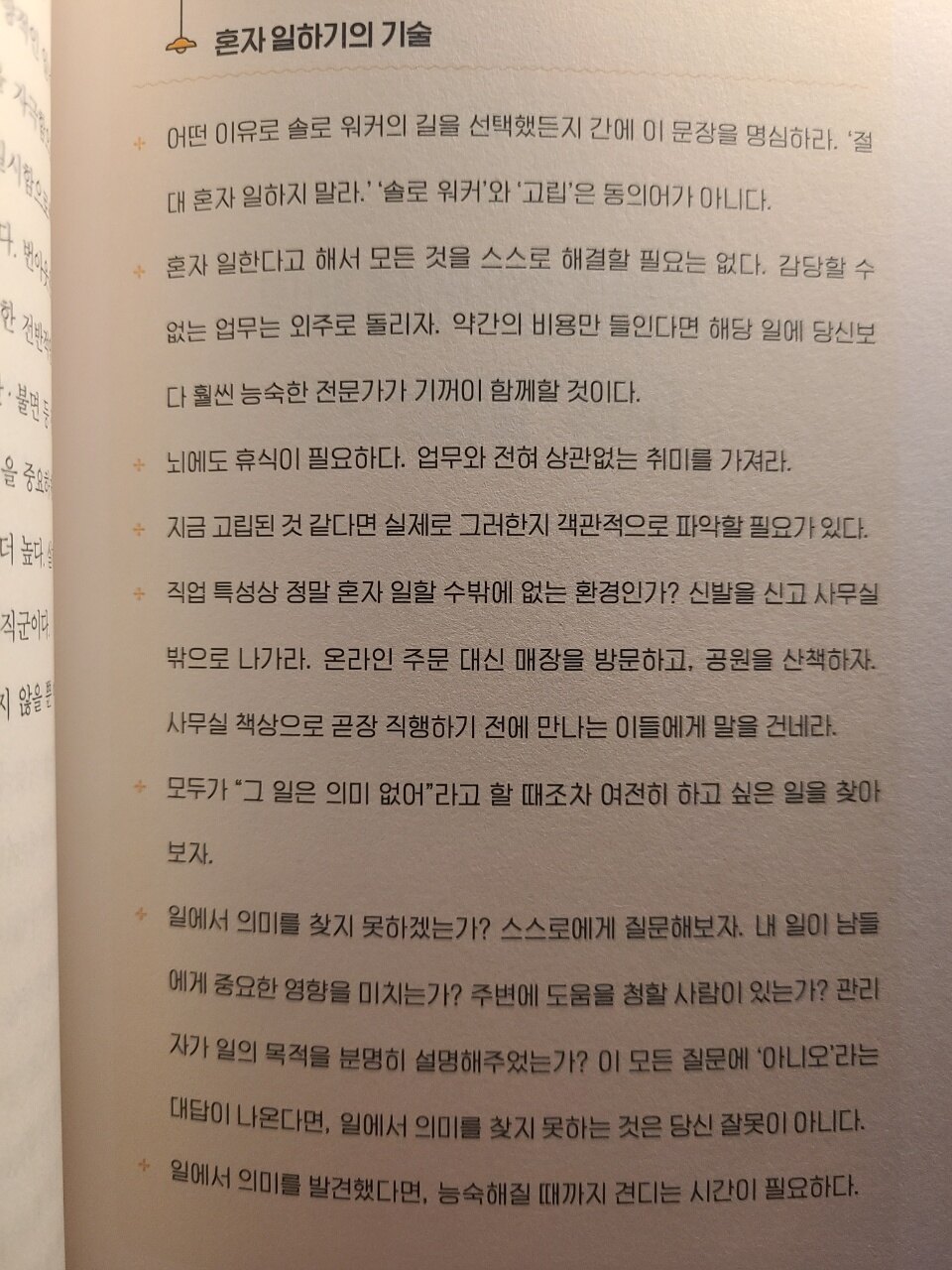 혼밥 노하우에, 공간을 꾸미는 법이라니.. 정말 ^^ 현실적으로 솔로 워커를 오래해 본 사람이 경험에서 나온 지혜를 주네요. 무엇보다 나의 상사가 나라는 점.. 그리고 나의 직원도 나라는 점을 잘 기억했다 나중에 창업했을 때 나의 복리후생과 워라밸도 챙겨가며 행복하게 일하고 싶다는 다짐을 했답니다.
