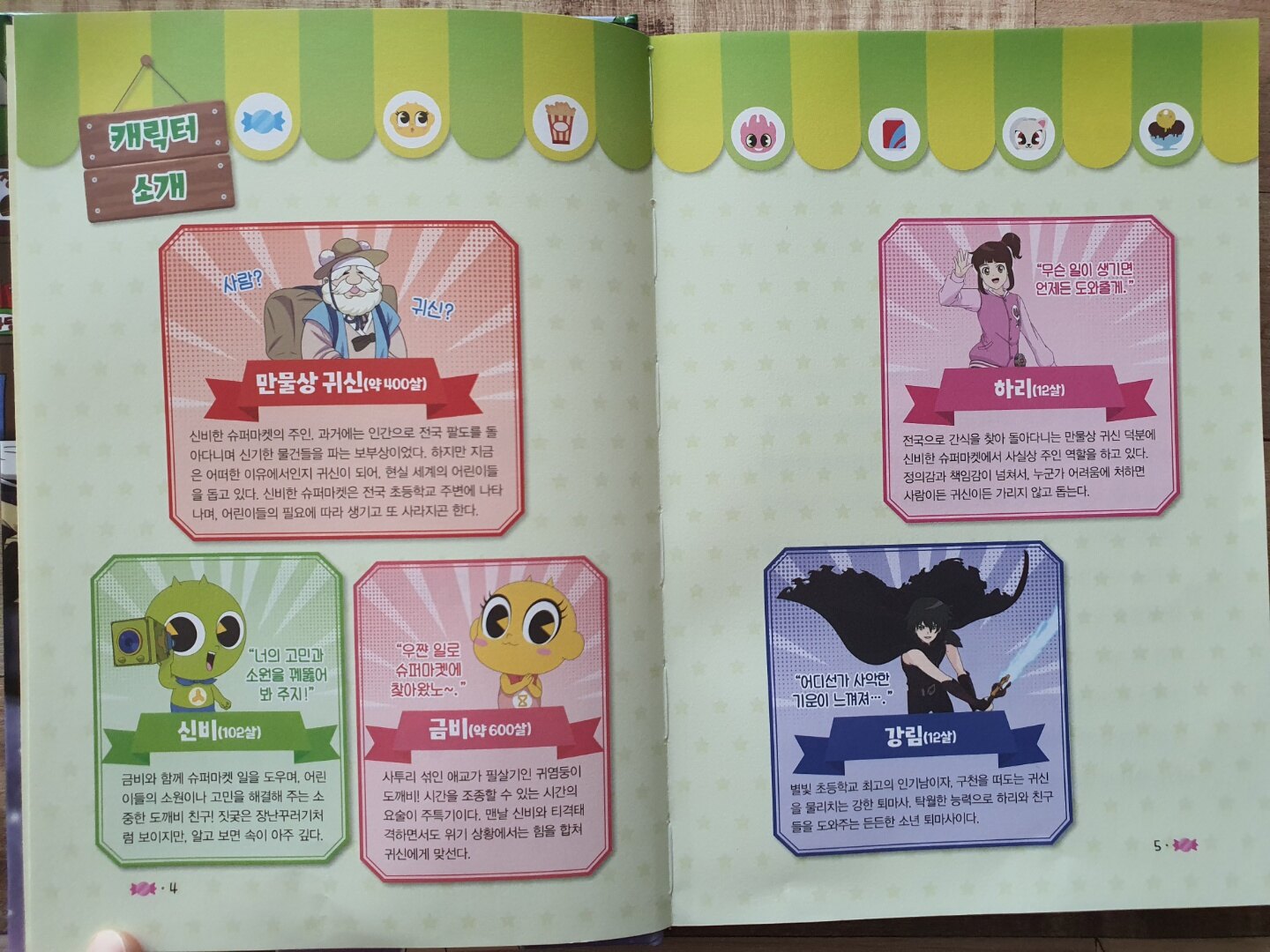 익숙한 캐릭터 신비와 금비, 그리고 주인공 하리와 하리가 좋아하는 강림이가 『신비아파트 귀신 슈퍼마켓』 의 등장인물입니다. 거기에 약 400살의 만물상 귀신이 새롭게 등장했는데요. '호러 판타지 동화'인 만큼 어떤 호러가 담겨있을지 무척 궁금합니다.