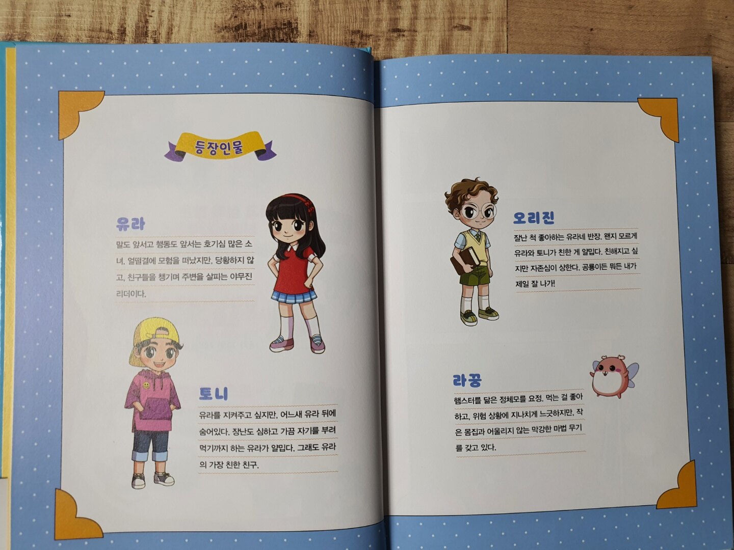 주인공은 호기심 많은 소녀인 유라와, 유라의 절친 토니, 그리고 유라네반 반장 오리진입니다. 거기에 유라를 지켜주는 수호신 같은 요정 라꿍까지 함께랍니다.^^