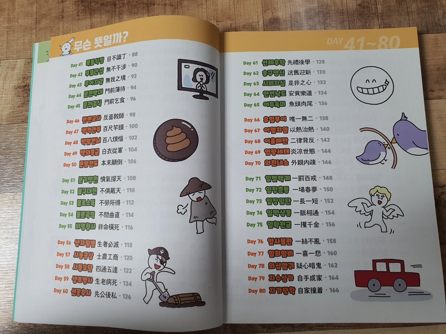100개의 한자를 적고 보니 아는 사자성어보다 모르는 사자성어가 더 많은 것 같아 아이와 함께 읽어보기로 했다. 무슨 뜻인지 설명이 만화로 되어 있어 책 읽기 싫어하는 아이들도 무척 잘 읽는다.
