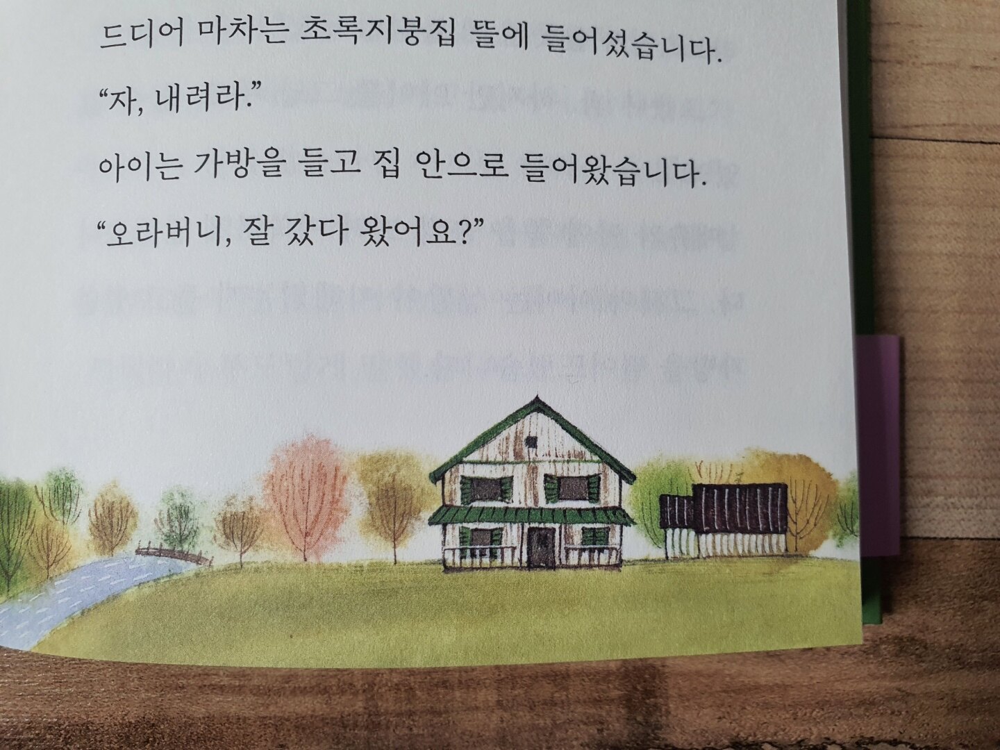 초록지붕집. 그림대로라면 앤이 몇번이고 반할만한 충분한 매력이 있는 집인 것 같다. 앤이 상상력을 무긍무진하게 펼칠 수 있었던 장소가 이 곳이었으니 이곳은 마치 앤에게 천국과도 다름 없는 곳이었을 수도 있었을 것이다. 앤은 자신이 남자아이가 아니란 이유로 이 초록지붕집에서 살지 못하게 된다는 것을 알았을 때 상심이 컸다. 하지만 앤은 그럼에도 불구하고 긍정마인드를 잃지 않았다.