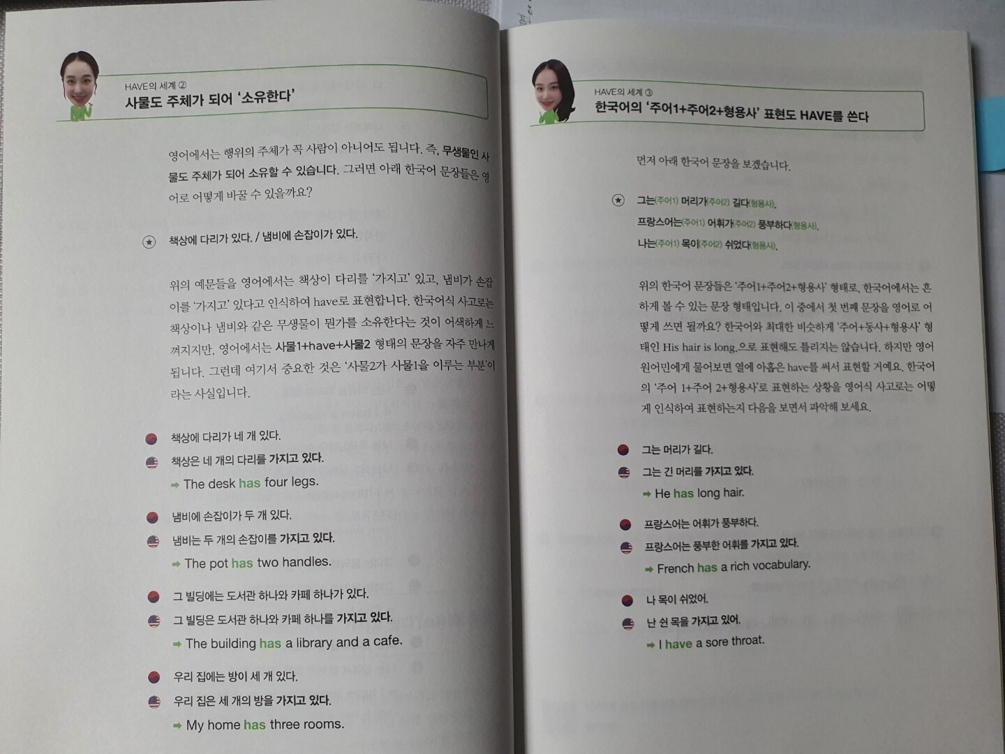 영어 문장을 반복하여 읽으면 영어식 사고를 자연스럽게 익힐 수 있다고 하는데요. 기초 문법에서 배웠던 부분을 복습할 수도 있었습니다. 한국어 문장과 영어 문장을 비교하며 읽게 되니 그 차이점을 이해하는데 도움이 되었답니다.