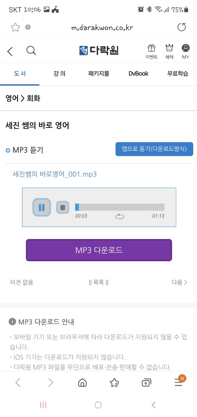 조금 애매하다 싶으면 MP3를 먼저 듣고 그 문장을 써보기도 했는데요. 들으면서 쓰게되면 반복해서 듣게 되어 복습효과가 있었습니다.