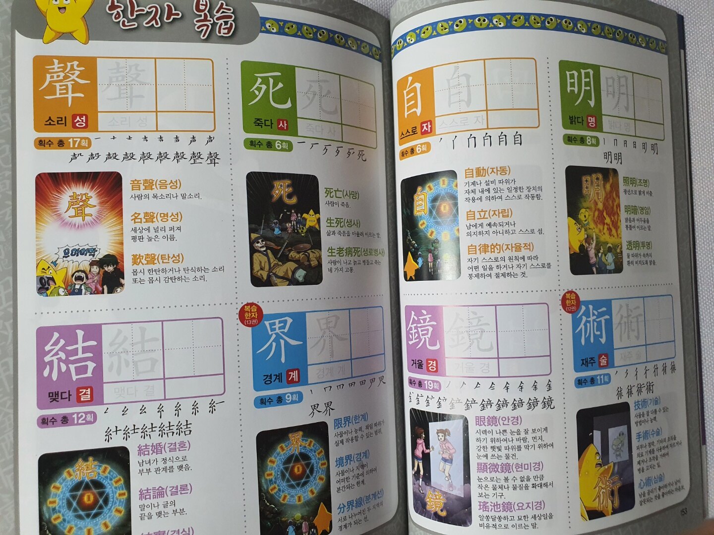 만화 곳곳에 이야기에 해당하는 한자가 '갑툭튀'인듯 아닌 듯 큼직한 한자로 표기가 되어 있는데요. 안 보려야 안 볼 수 없기 때문에 저절로 읽기만 해도 공부가 된다는 말을 이해할 수 있었습니다.