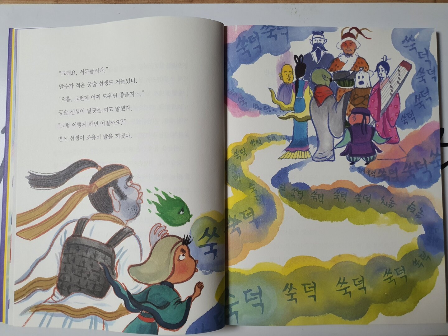 닥락궁은 신선들이 사는 곳인데요. 실수로 검색창에 '당락궁'이라고 검색해보니 엄청 화려한 모습의 '당락궁 쇼'가 펼쳐졌습니다. 그래서 아마도 이 화려한 '당락궁' 처럼 '닥락궁'도 화려하고 멋진 모습이 아닐까 상상을 해보았습니다. 예로부터 신선들이 사는 곳은 평화롭고 좋은 곳이라고 알아 왔으니까요^^;; 이러한 닥락궁에 천 년 만에 태어난 귀한 아기 신선 천년손이가 또다시 인간 세상에 내려가야만 하는 일이 생겼다고 합니다. 흥미진진했던 지난 이야기에 이은 모험이 호기심을 마구 자극하네요^^