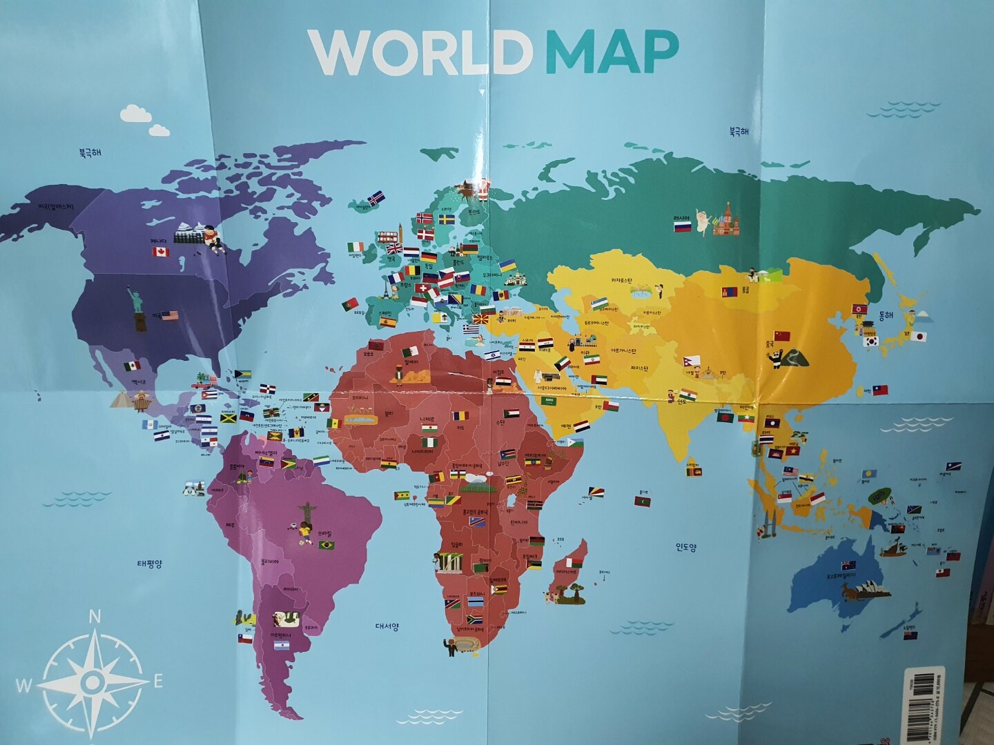 『나의 첫 세계 국기 사전』 에 함께 동봉된 WORLD MAP과 국기 스티커는 아이들이 이렇게 활용해보았습니다.