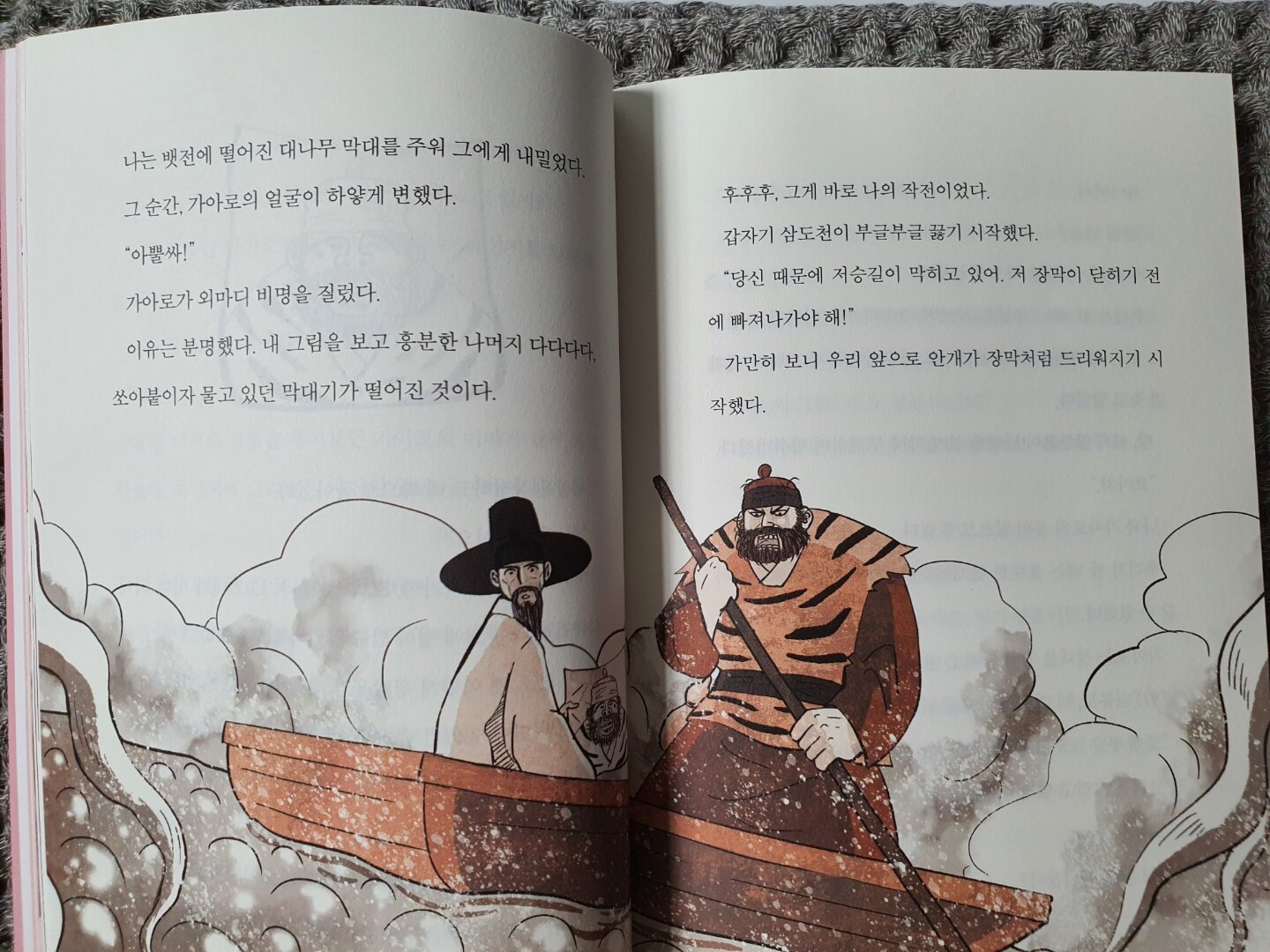 지난 '리틀씨앤톡'의 '우리 반 시리즈'에서는 이승과 저승의 강을 건너는 배를 가진 카론이 위인에게 나타나 세상에 이로운 일을 해야만 다시 돌아올 수 있다고 했습니다. 하지만 이번 김홍도에게는 세상에 이로운 일, 의미 있는 일 대신 술래잡기를 해야 한다고 하네요. 과연 이번 카론 '가아로'는 무슨 꿍꿍이가 있는 것일지 호기심이 증폭됩니다.^^