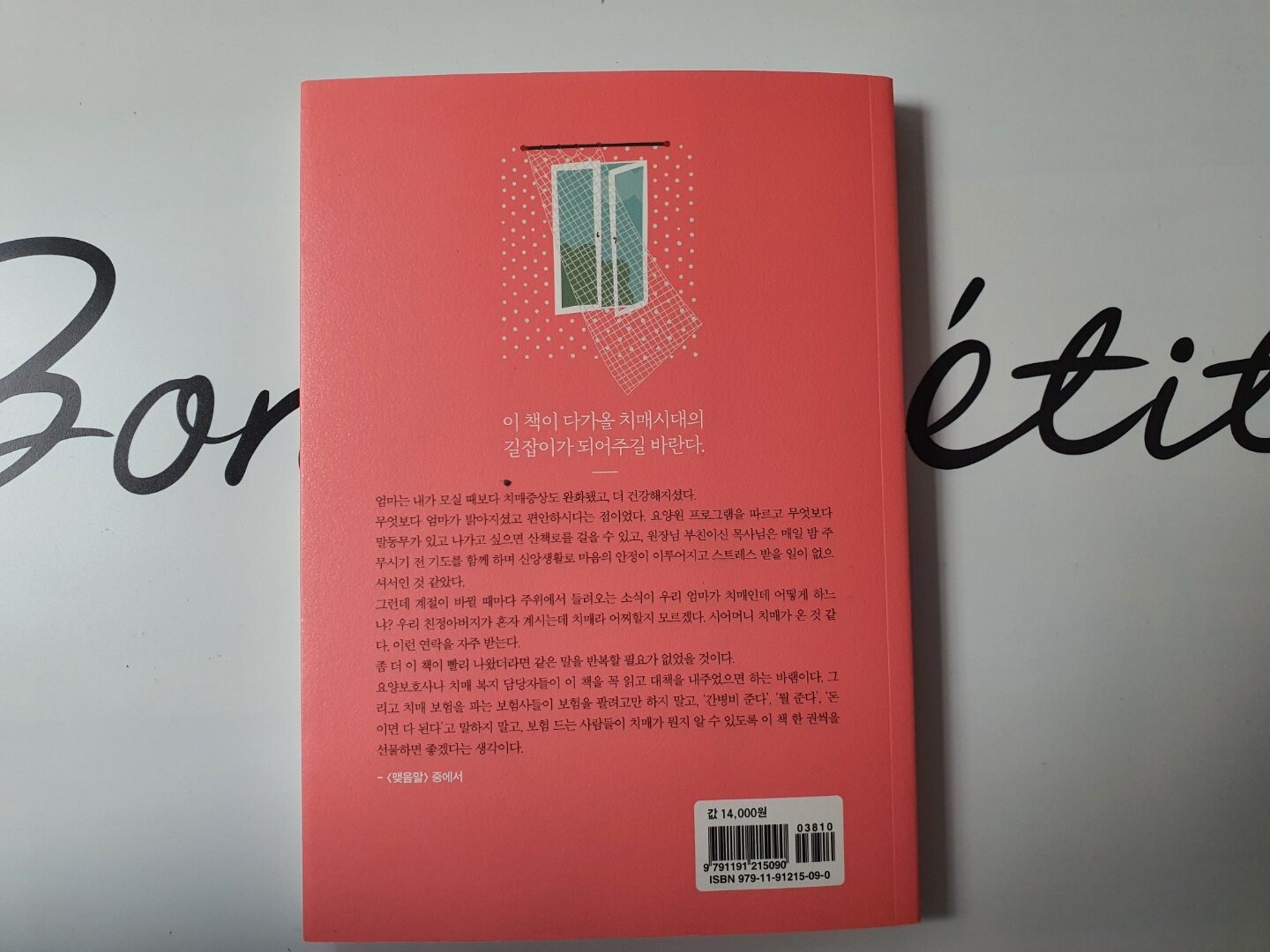 행여 엄마가 다치기라도 하는 날에는, 엄마가 집을 나가기라도 하는 날에는 무얼 했느냐며 비난받는 일도 치매 엄마를 돌보는 일 중의 하나가 되는 것은 아니었을지 생각해 봅니다. 치매 가족이라서... 아플 자유도 치료할 자유도 없었던 치매 가족. 그래서 더 힘들고 더 슬픈 치매 가족. 유현숙 작가는 본인이 직접 겪은 치매 가족으로서 우리나라의 제도에 대한 비판도 아끼지 않았습니다. 요양보호사라는 자격증을 소지하고 있음에도 불구하고 가정부로 착각하는 요양보호사들도 적지 않을 것입니다. 회장님맘도 요양보호사 자격증을 취득한 1인으로써 실제 요양보호사를 필요로 하는 환자들의 이해가 조금 더 필요하다는 느낌을 받았습니다. 요양보호사 자격증을 취득하면서 요양병원에 실습을 나간 적이 있었는데 실제로 침대 밑에 대변을 숨기시는 분, 화장실 벽에 대변을 묻히시는 분, 서로 다른 콩을 섞어놓고 고르게 하며 탈출(?)을 잠재우시던 분, 누군가 자신의 신발을 가져갈까 봐 낮잠을 잘 때도 옆에 신발을 둔 채 쪼그리고 잠이 드시던 분들... 과연 내가 이분들을 잘 케어할 수 있을까 하는 생각을 했었습니다. 또한 그게 내 가족이라면 어땠을까 하는 생각도 해보았습니다. 온전하던 모습을 간직한 채 온전하지 않은 모습을 지켜보는 마음이 어떨지 상상조차 하기 힘들었습니다.