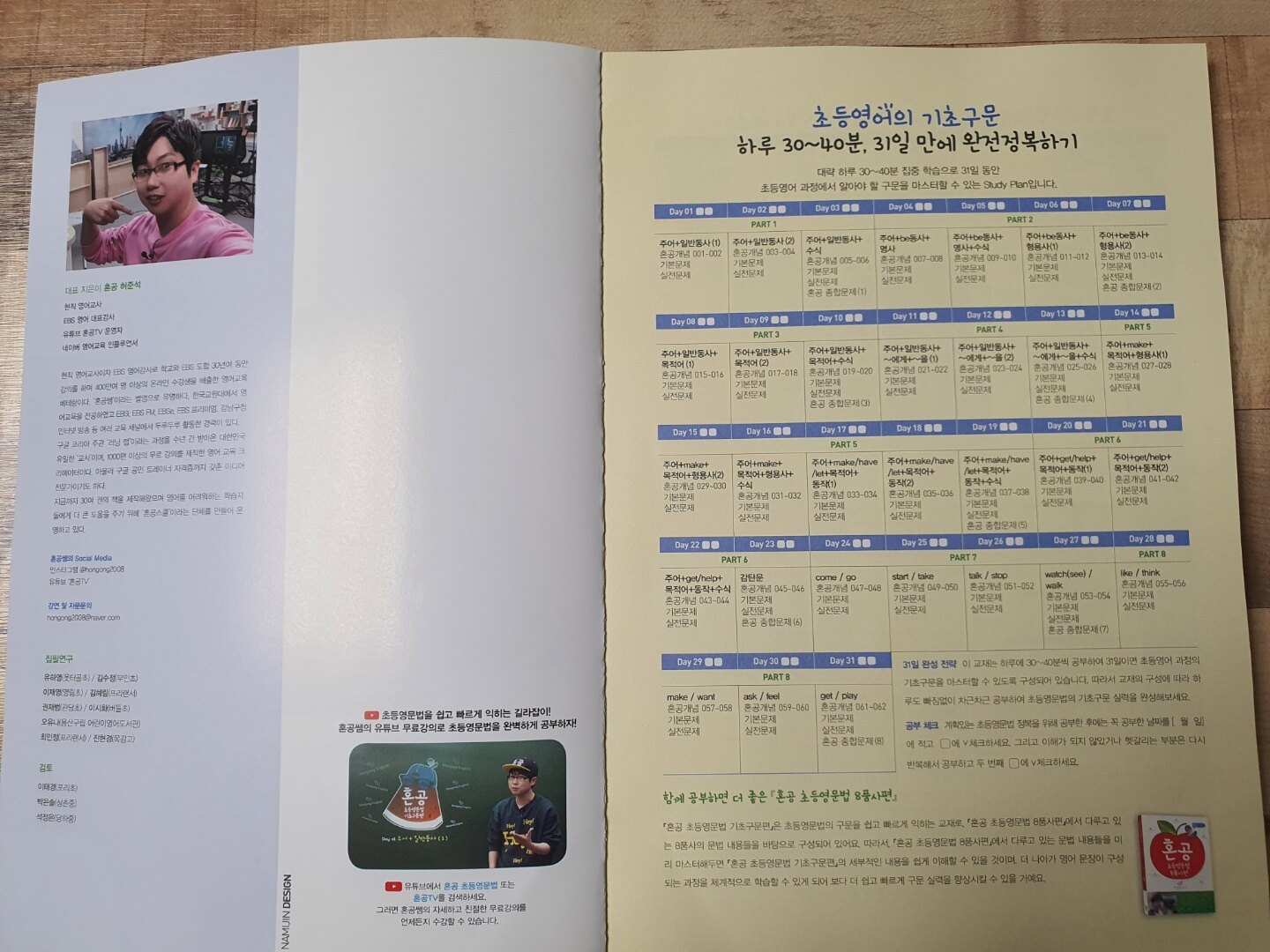 주말까지 포함해서 하루에 30분정도만 꾸준히 투자한다면 초등영어의 기초구문을 완전정복할 수 있습니다. 회장님은 영어학원을 다닌터라 하루 20분정도면 가볍게 이해할 수 있었습니다. 또한 유튜브 '혼공TV'로 무료강의를 볼 수 있어 더욱 유익한 『혼공_초등영문법 기초구문편』입니다.