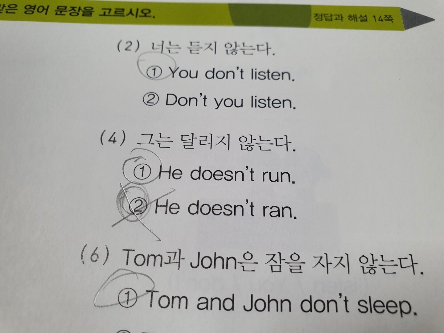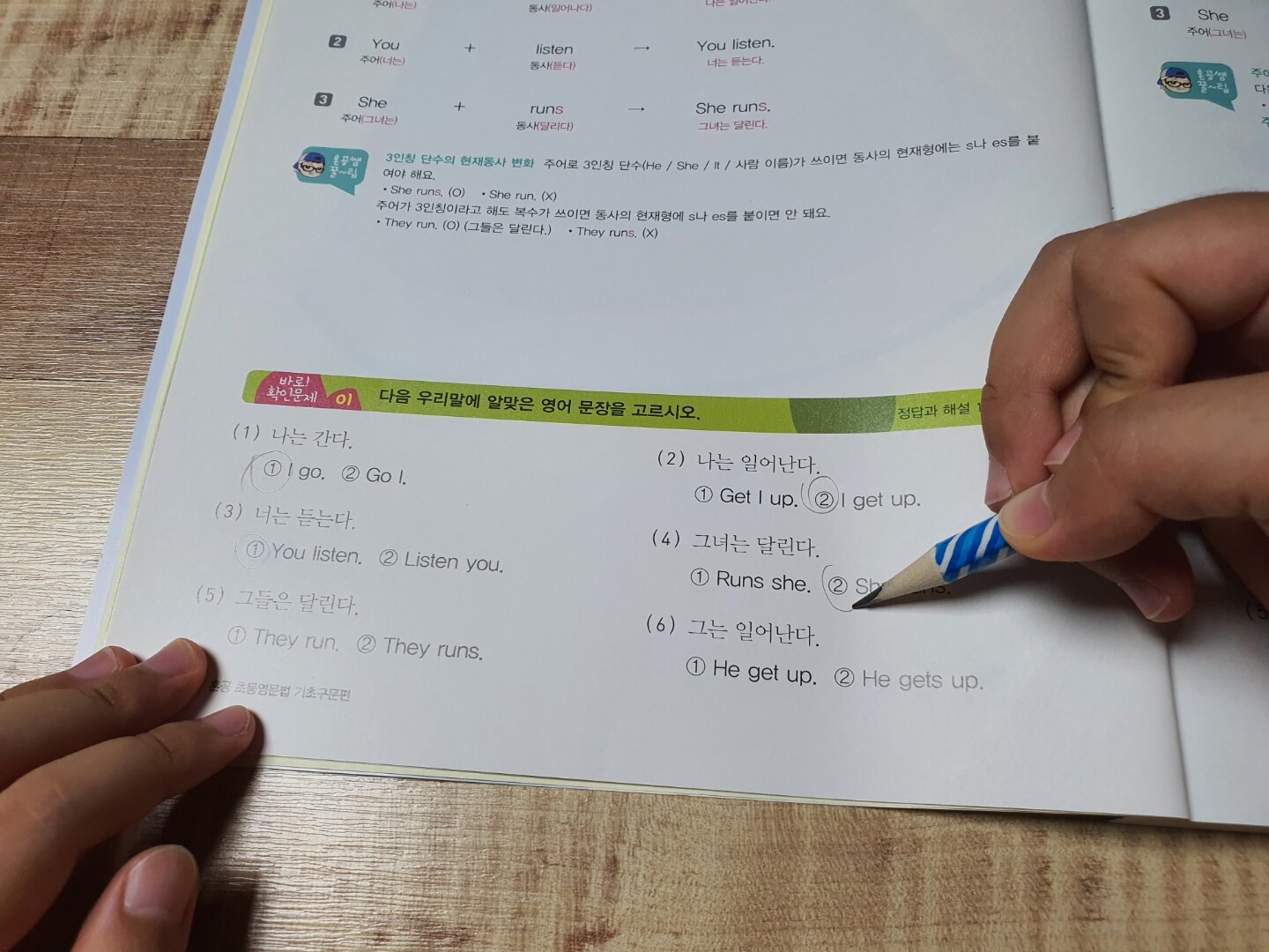 '주어+일반동사(현재)'가 첫째 날 공부할 주제입니다. 영어를 시작할때 주어가 3인칭 단수일 때와 복수일때 변화를 잘 설명해주고 있어서 회장님이 이해하는 데 쉬웠다고 합니다. 개념을 먼저 익히고 기본문제를 풀어본 뒤에 실전 문제를 풀어보는 순서로 공부를 하게 되는데요. 이렇게 익히고 난 뒤에 혼공 종합문제까지 풀어보면 완벽한 복습이 됩니다.