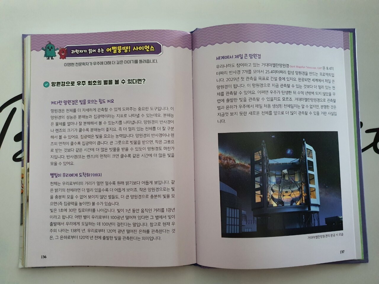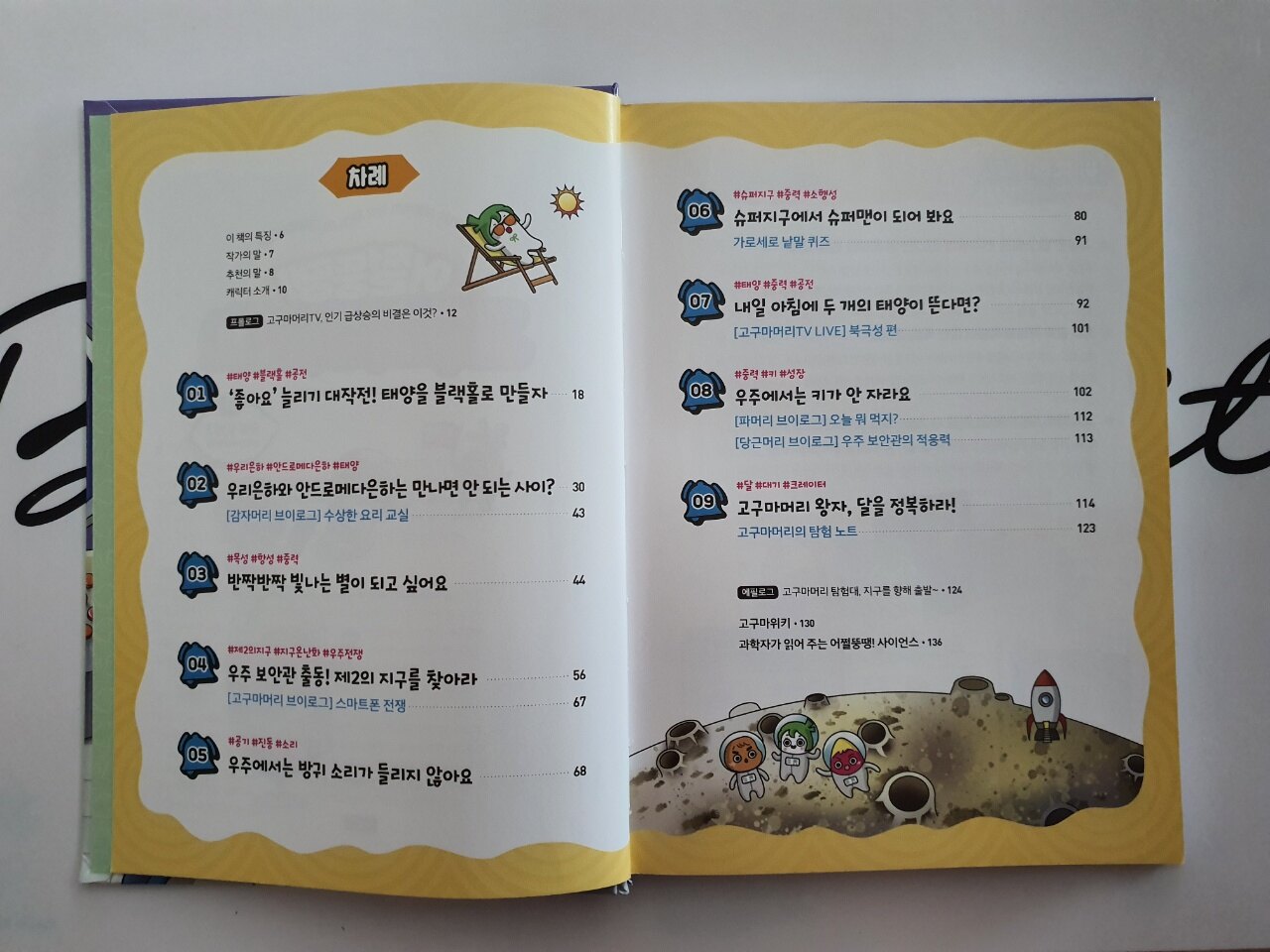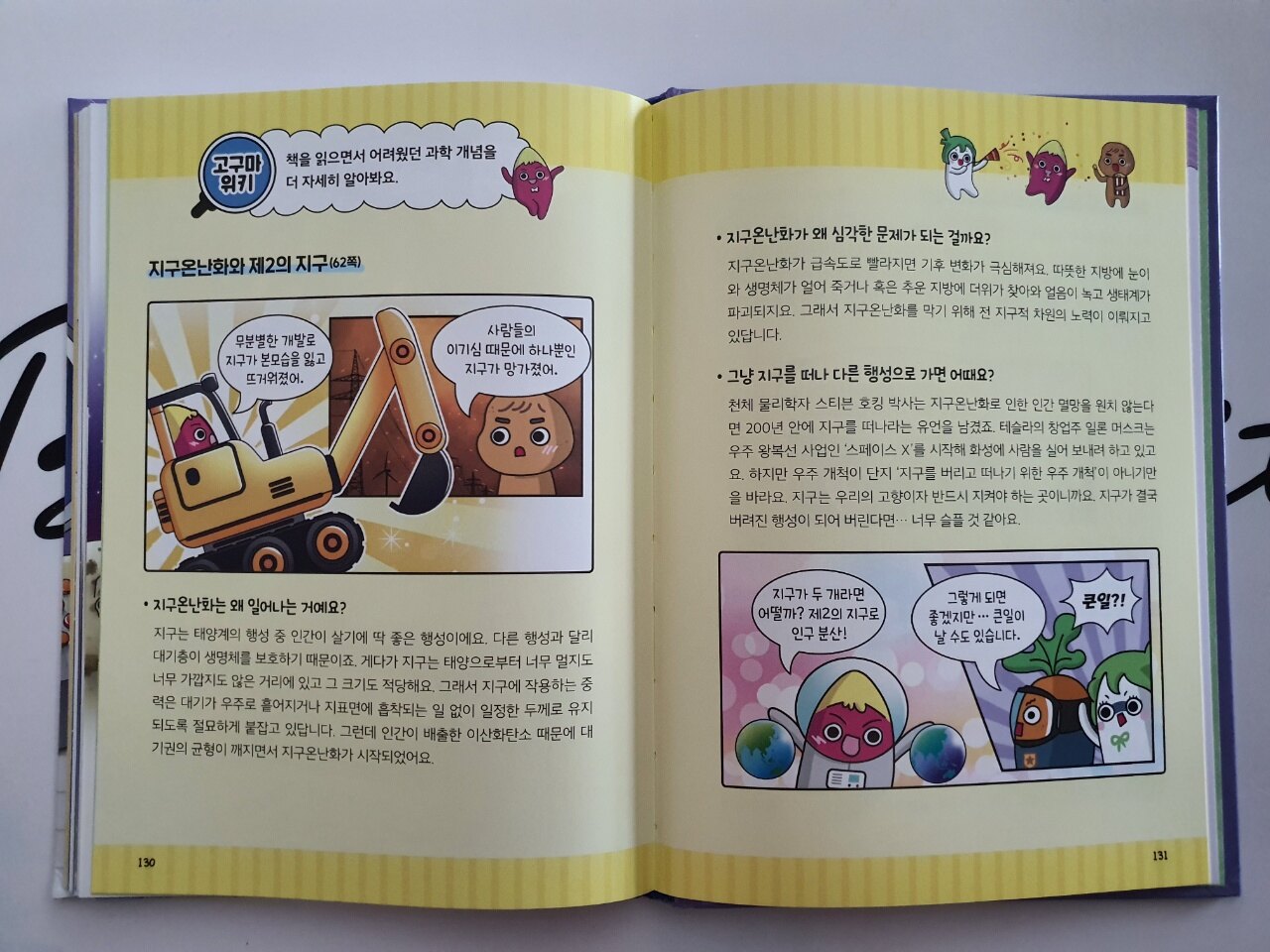 책을 읽으면서 어려웠던 과학 개념을 자세히 알아볼 수 있는 시간인 고구마 위키. 지구온난화와 생명체가 멸종할 뻔한 대사건, 우주에 오래 머물게 되면 달라지는 인체의 변화까지 상세히 수록되어 있어 그 궁금증을 충분히 해결할 수 있습니다.