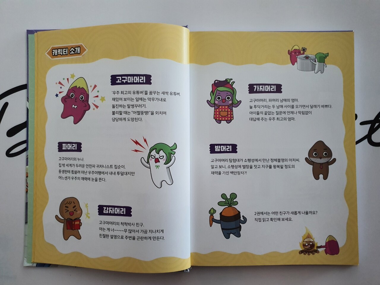 유튜브에 관심이 많은 감자머리의 도움을 받아 우주로 떠나게 됐던 고구마머리탐험대! 이번엔 우주에서 어떤 탐험을 했을지 궁금합니다. 또한 1권보다 더 강력해진 재미로 나타난 2권 『어쩔뚱땡! 고구마머리TV』 우주 탐험 '반짝반짝 별들의 역습' 은 과학 개념이 더욱 풍성해져 보는 재미와 학습의 효과가 더욱 높아졌음을 알 수 있답니다.^^