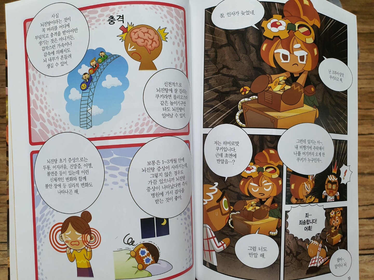 첫 등장으로 마을의 평화를 지키려던 히어로맛 쿠키가 고장난 슈트로 인해 크루아상맛 쿠키를 만나게 되면서 이야기가 시작됩니다. 히어로맛 쿠키의 슈트가 고장나 하늘에서 추락하게 되고 이때 머리를 부딪히며 뇌진탕일 수도 있으니 잘 살펴보란 크루아상맛 쿠키의 말을 듣게 되는데요. 머리에 충격이 가하면 뇌에 영향을 받게 되고 이때 가장 조심해야 할 부분이 뇌에 관련된 부분이 아닌가 생각합니다.