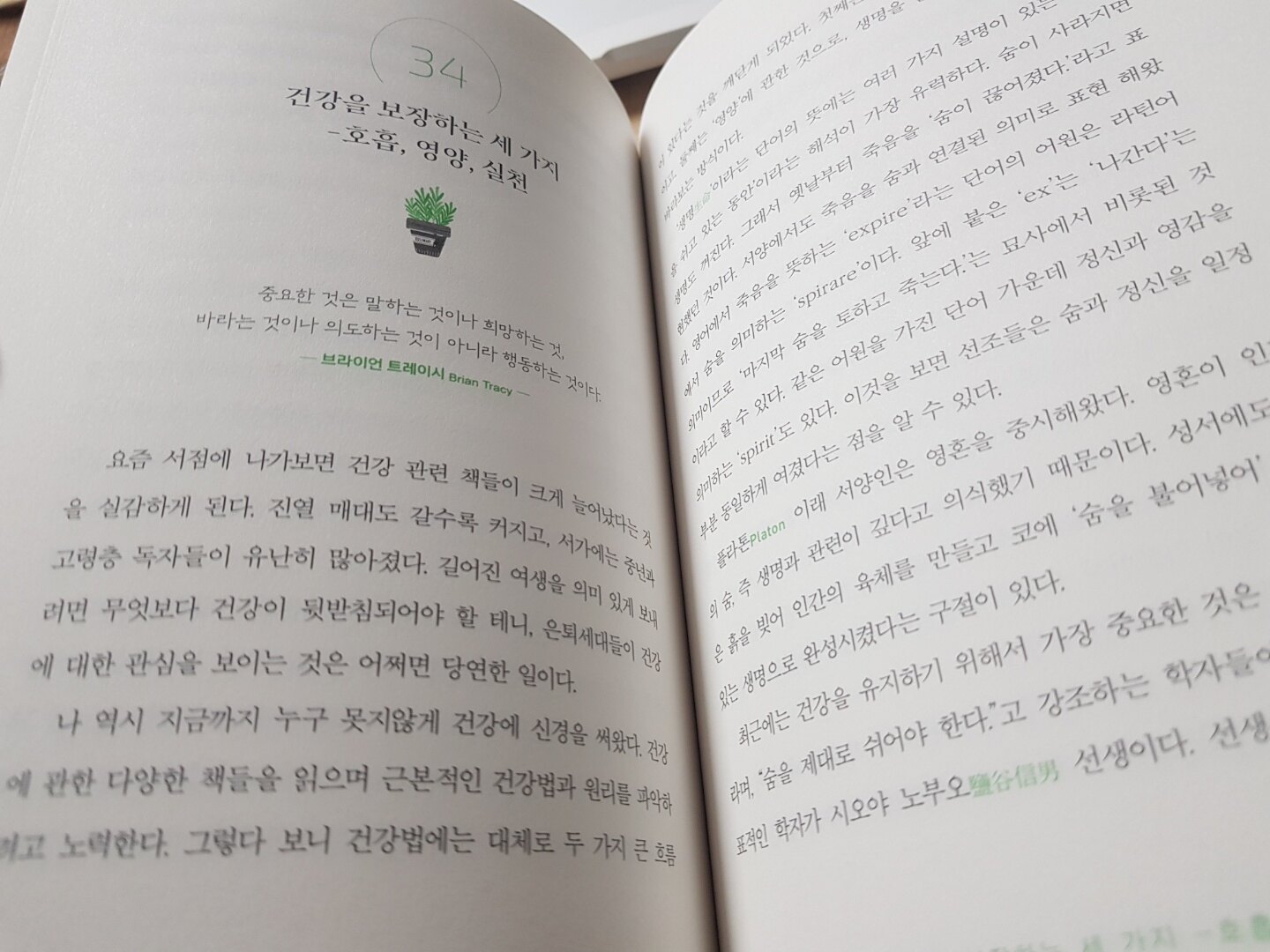 처음 예상했던 부분이 나와 반가운 마음에 기록해봅니다. 삶의 요건 중에서 건강은 빠질 수 없는 필수 요소입니다. 수많은 건강서적을 펼쳐볼 것 없이 이 책 하나만으로 건강할 수 있는 비법을 알 수 있는 부분이니 꼭 기억해야겠습니다.