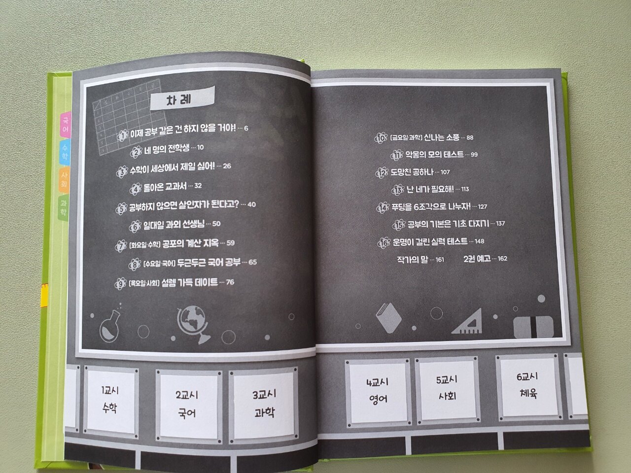 『시간표 소년』 이라는 제목에 걸맞게 차례가 요일과 과목으로 되어 있습니다. 아무래도 주인공이 공부를 아주 열심히 해야 할 것만 같은 느낌이 들죠?^^