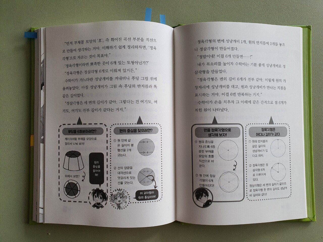 푸딩을 좋아하는 하나에게 푸딩을 대입해 나누기를 해보고 도형에 대해 생각해 보며 하나가 알아들을 수 있을 만한 말들로 공부를 하는데요. 이러한 계수학의 노력으로 하나는 조금씩 수학의 매력을 느끼게 됩니다.