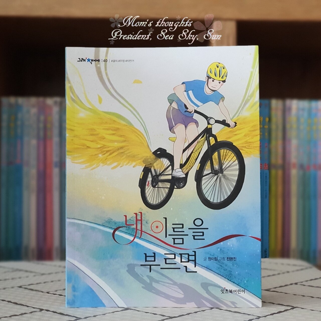 가족의 사랑으로 황금날개는 진짜 황금날개가 되어 형섭이를 날아오르게 합니다. 세진이와의 시합에서 형섭이는 날아오르는 황금날개를 타고 우승을 거머쥘 수 있었을까요? 황금날개는 주인을 기다린 만큼 또 기다린 것이 하나 있었는데요. 바로 친구입니다. 자신처럼 마음씨를 가진 자전거 친구를 만나는 것이죠. 하지만 이름을 일곱 번 불러 마음씨를 가진 자전거를 만나기란 쉽지가 않았습니다. 형섭이와 황금날개는 진정한 우정을 나눌 친구를 만났는지 못 만났는지에 대한 이야기는 '잇츠북 어린이' 출판사의 '그래 책이야'시리즈 40번째 이야기 『내 이름을 부르면』 에서 확인하셔야 하는 거 아시죠?^^