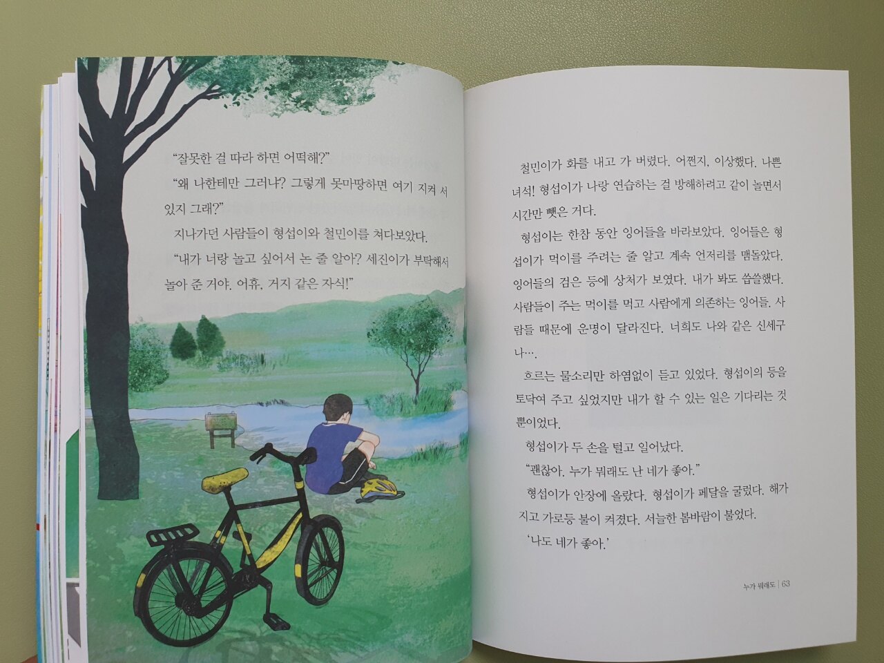 사람과 자전거와의 우정을 그린 '그래 책이야' 40번째 이야기 『내 이름을 부르면』. 버려진 자전거를 비롯하여 물건에도 마음씨가 있다는 내용으로 결의와 우정을 그린 이야기였습니다. 앞으로는 형섭이와 황금날개의 우정에 버금가는 인연이 될 수 있도록 물건을 소중히 다루는 나와 우리가 되어야겠습니다. 그러면 황금날개처럼 우리의 물건들도 우리를 소중히 여기겠지요?
