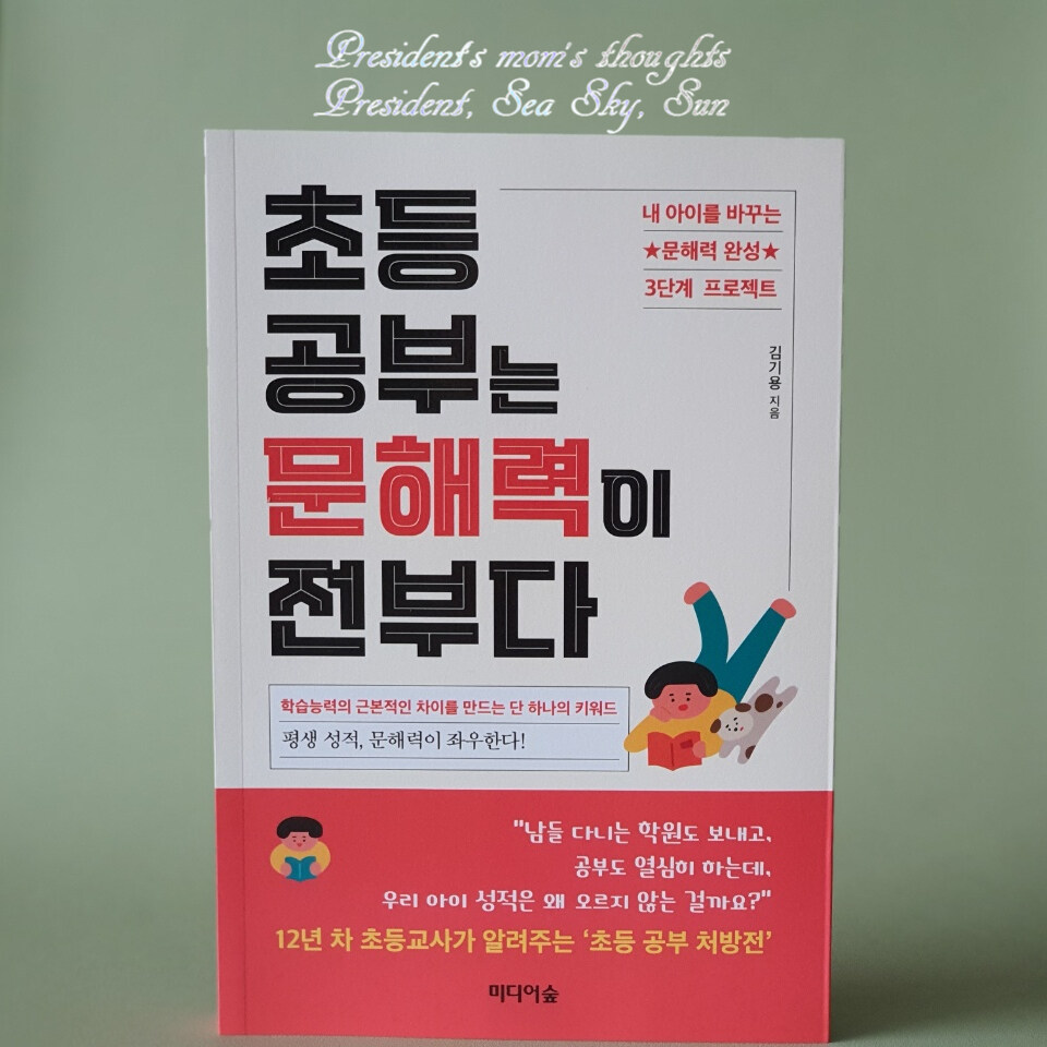 초등학교 4학년인 큰 딸, 초등학교 2학년인 둘째 딸, 유치원생인 셋째 아들을 키우는 삼 남매의 엄마로써 아이들의 공부에 대한, 더 정확히 이야기하자면 성적에 대한 고민을 하지 않았다고 하면 거짓말일 것입니다. 초등학교 고학년으로 접어드는 시기에 자녀들을 키우다 보니 자연스레 공부를 잘하려면 어떻게 해야 할까를 시작으로 '미디어숲' 출판사의 『초등 공부는 문해력이 전부다』를 펼치게 되었습니다. 문해력이 부족하면 생각하고, 표현하고, 응용하는 능력이 떨어진다고 합니다. 아이들의 공부 의지가 쉽게 꺾이게 되는 것이지요. 문해력은 글을 읽고 이해하는 능력인데 최소한의 문해력은 아이가 공부를 이어가는 데 필수 요소라고 설명합니다. 지금까지 삼 남매에게 다독을 권장하기만 했을 뿐 이해하고 응용하고 표현하며 적용하는 것까지는 신경 쓰지 못한 것을 반성하게 되네요.