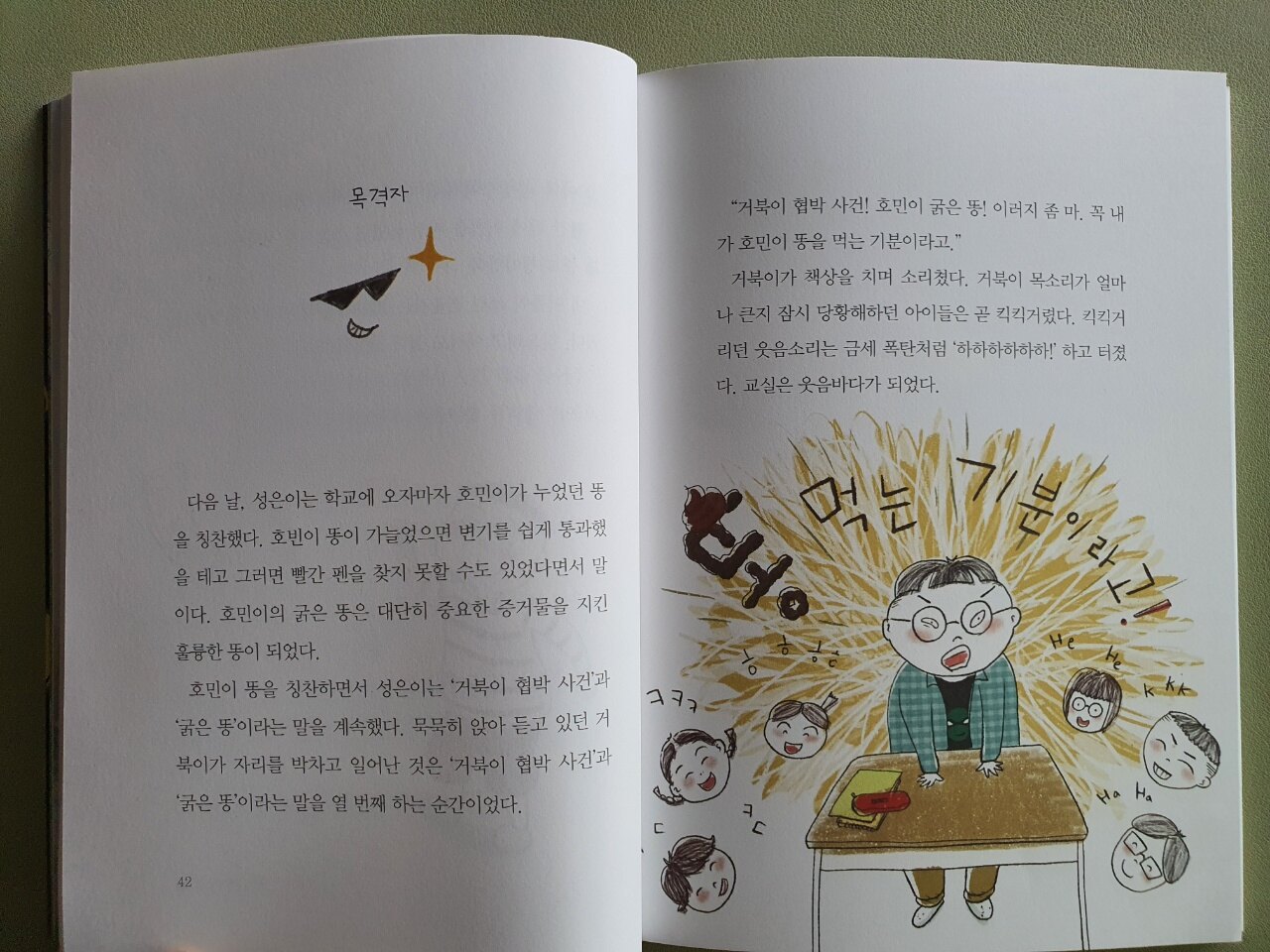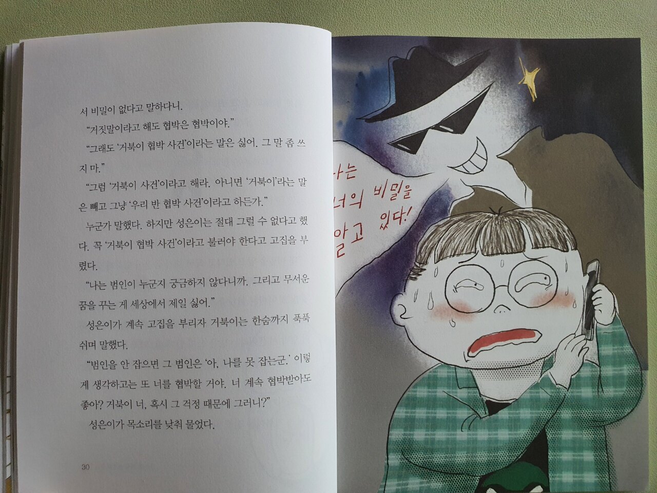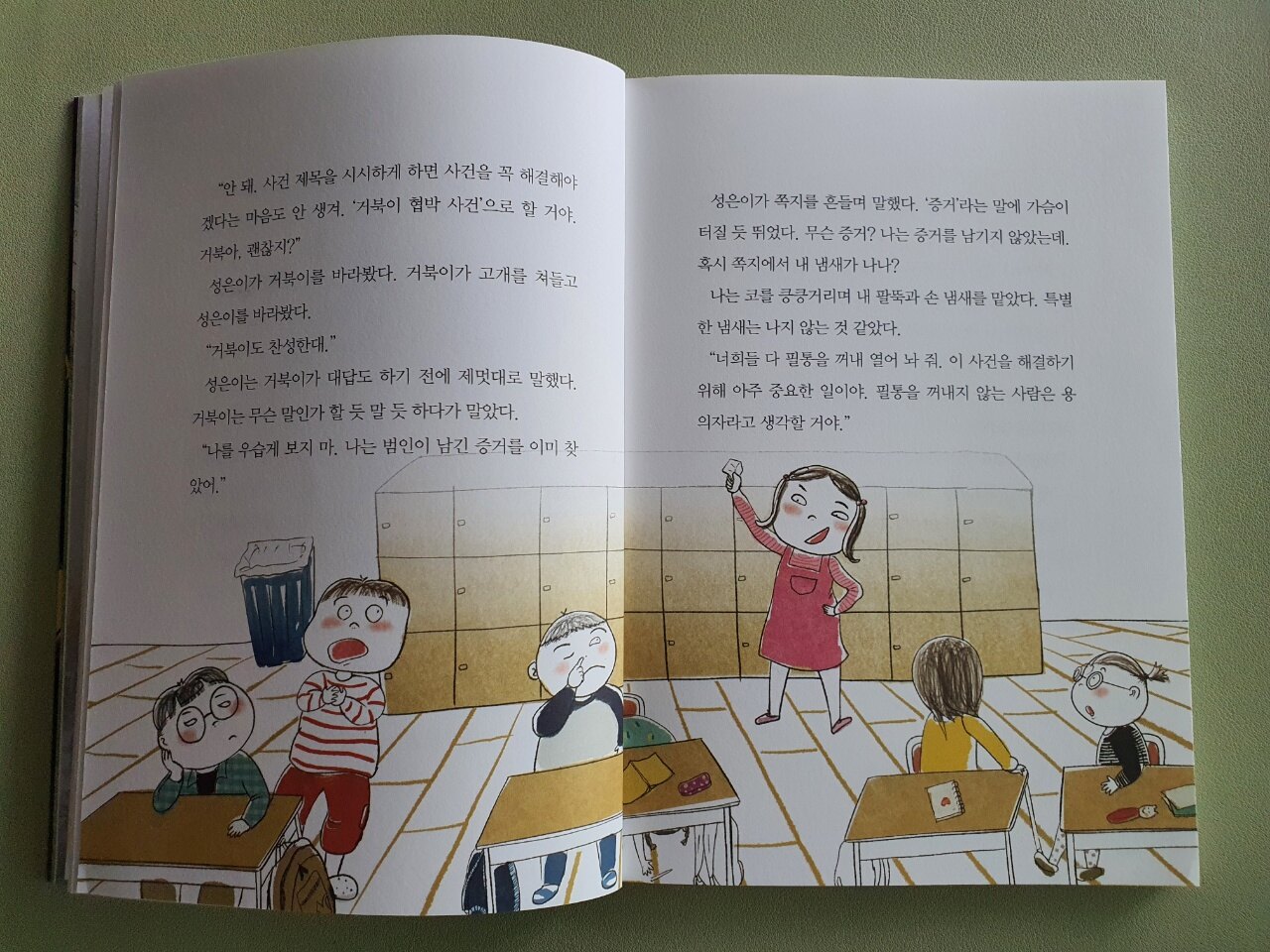 이야기는 탐정을 꿈꾸는 성은이의 호들갑에서부터 시작됩니다. 다짜고짜 용의자(범인일 것 같은 사람, 범인으로 의심되는 사람)를 잡겠다는 성은이는 별명이 거북이인 친구에게 온 쪽지를 들고 협박한 사람을 찾겠다는 것입니다.